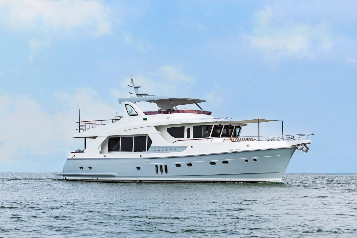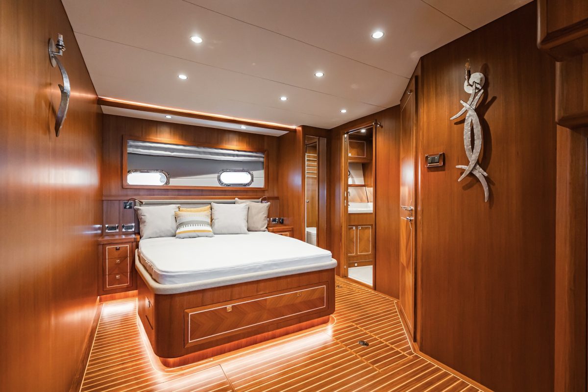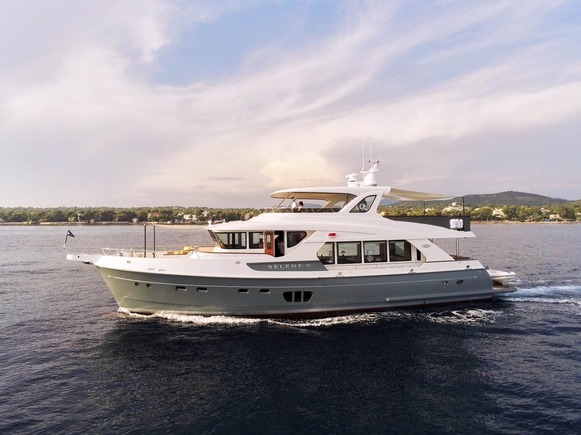 With a LOA of 75’-9”, a displacement of 158,688 Lbs ( 72 Tons ) and equipped with two Cummins QSL9 405 BHP engines (a single engine version is also available), the Selene 72 carries more than 3,000 USG ( 11 355 Liters ) of fuel for long range voyages at a cruising speed of 9 knots, with a top speed of 11.5 knots.